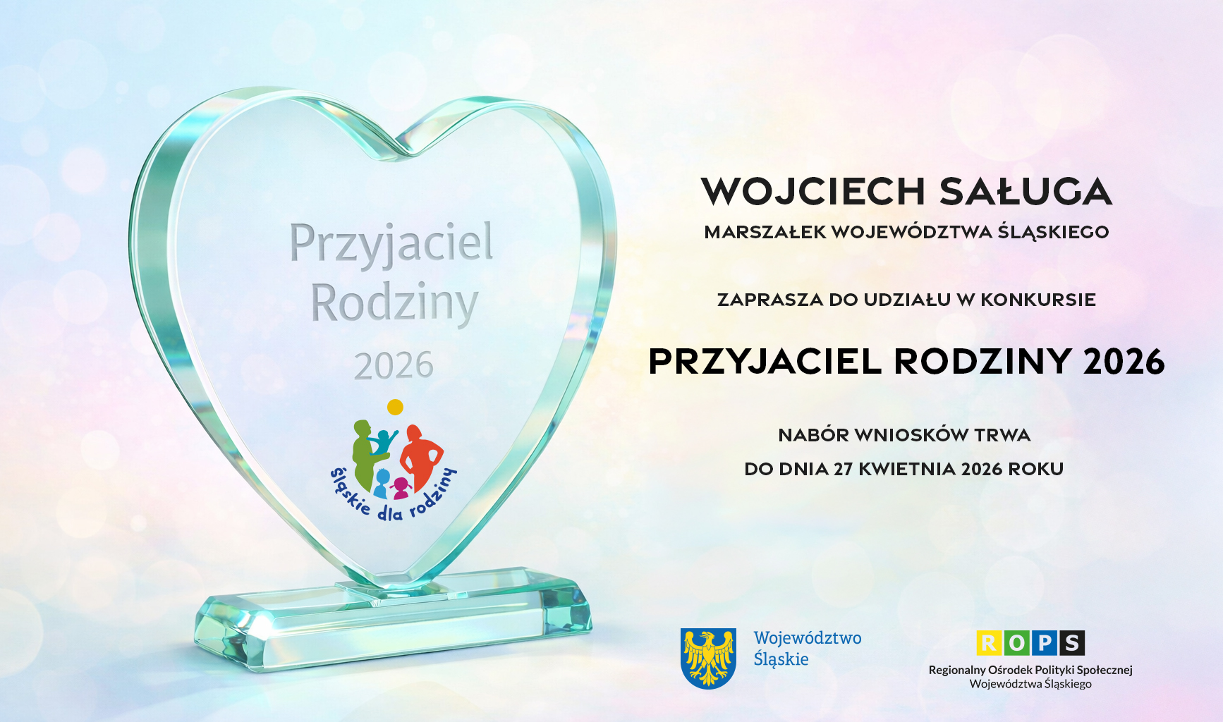 Wojciech Saługa, Marszałek Województwa Śląskiego ogłasza nabór wniosków do konkursu „Przyjaciel Rodziny 2026” – nagrody indywidualnej Marszałka Województwa Śląskiego.